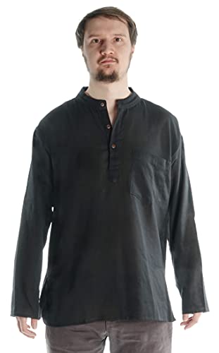 HEMAD Chemise avec Col Mao en Pur Coton - Kurta De Nepal - Noir - XL