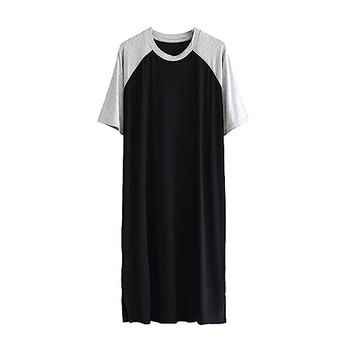 GTHTTT Hommes Chemise De Nuit À Manches Courtes Col Rond Coton Vêtement De Détente Être Facile À Mettre Et À Enlever Robe Lâche Pyjama,Black Dark Gray,XL