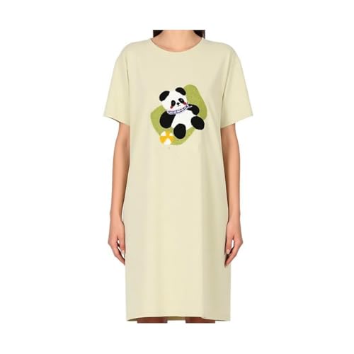 YRSHENG Chemise De Nuit Femme en Coton, Nuisette Femme Mi-Longue Manches Courtes, Robe De Maison Décontracté, Cadeaux De Saint-Valentin, Cadeaux De Noël,Jaune,M(40~50kg)