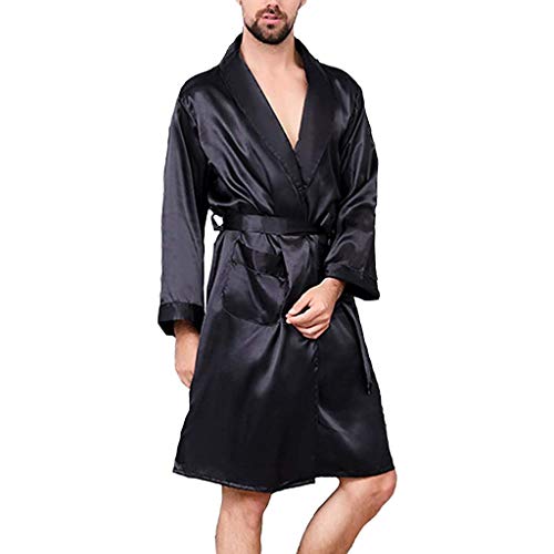 Hommes chemise de nuit robe Pour Des Hommes Peignoir Long En Satin Avec Chemise de Nuit Short, Manche Longue Vêtements de Nuit Légers, Ensemble de Peignoir Kimono ( Color : Black 1 , Size : Large )