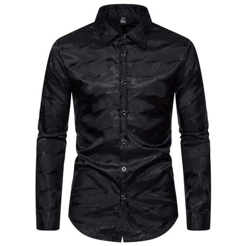Déguisement Disco Homme, Chemise Paillette Homme Disco Annee 70 80 Grande Taille Chemises pour Hommes À Paillettes Boutonné Deguisement Chemisier Brillant Manches Longues Haut Rétro Carnaval Noir, XL
