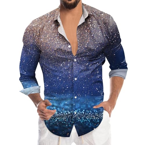 Générique Chemise Homme Disco à Paillettes FêTe CéRéMonie -Chemisier Brillant Boutonné Col à Revers à Manches Longues Slim Fit -Chemise DéContracté Comfortable Haut Respirant Costume Carnaval
