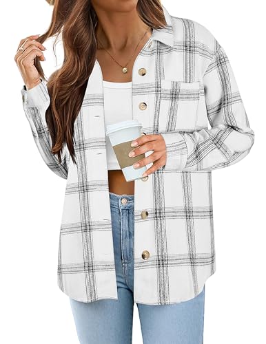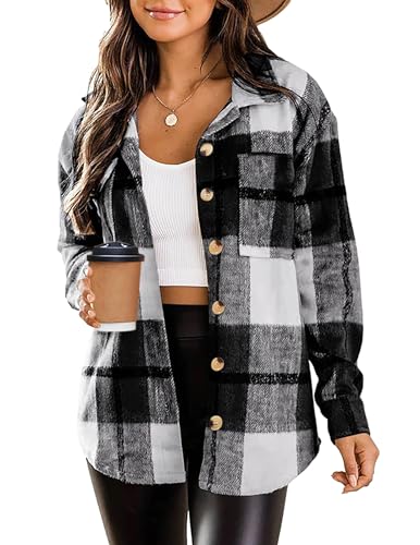 Zeagoo Veste chemise pour femme - Chemise boutonnée à carreaux à manches longues - Blouse en flanelle avec poche - Veste chemise décontractée - Chemise à carreaux - Automne hiver - Veste western