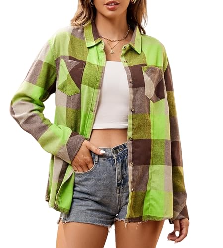Alex Vando Chemise en Flanelle boutonnée à Manches Longues pour Femme greencoffee