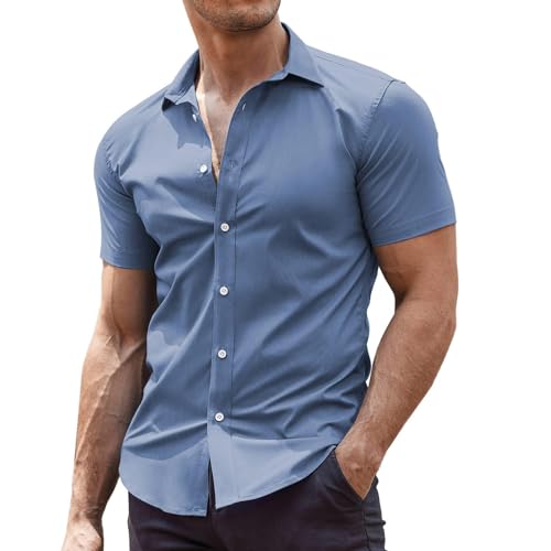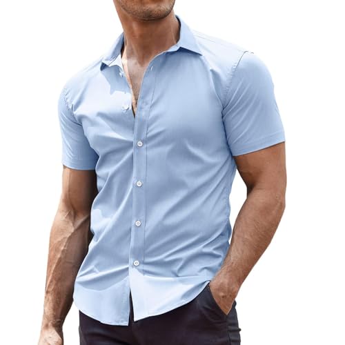 COOFANDY Chemise d'été à manches courtes pour homme - Manches courtes - Stretch - Tailles XS à 4XL, bleu clair, L