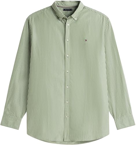 Tommy Hilfiger BT-Core Hairline Pop RF Shirt Mw0Mw43027 Chemise L/S, Green (Mountain Pine/Stripe), 4XL Grande Taille Homme