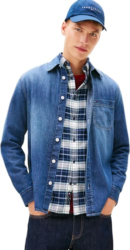 Tommy Jeans TJM Regular Fit Shirt Ext Dm0Dm22303 Chemise L/S, Denim (Denim Dark), 4XL Grande Taille Homme