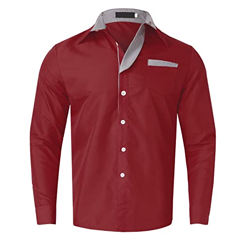 Générique Chemise Habillée Formelle pour Homme Manches Longues Business Regular Fit Chemises Habillées Boutonnées Longues avec Poch Casual Col Rabattu Bouton T Shirt Chemises Habillées Homme