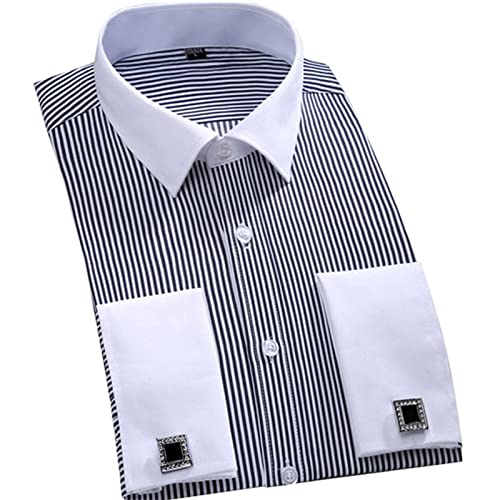 MAOAEAD Chemise à manches longues pour homme avec poignets français classiques à rayures, chemise de ville décontractée à poche plaquée unique, chemises business coupe standard