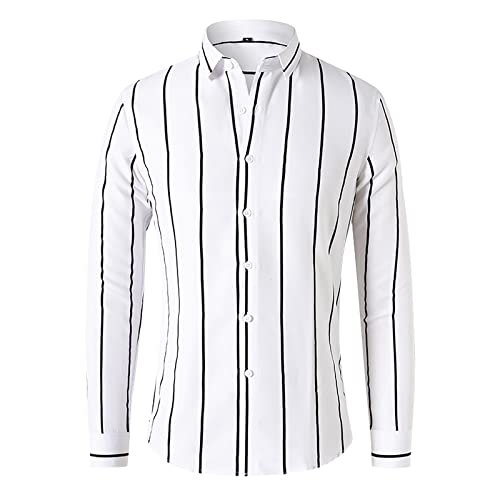 Chemise Vintage Homme sans Plis Manches Longues Coupe Ajustée Boutonnée Regular Fit Chemises Col Mao Chemises Grande Taille Chemise Blanche Homme