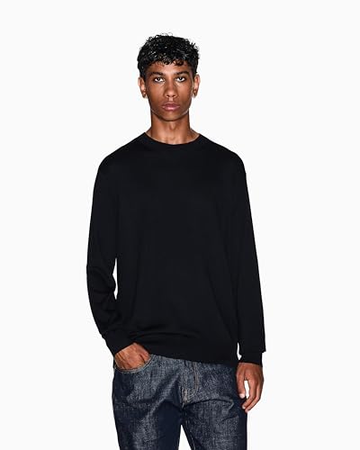 Armani Exchange Chemise boutonnée en Satin de Coton à Manches Longues pour Homme, Coupe Classique, Noir, XL