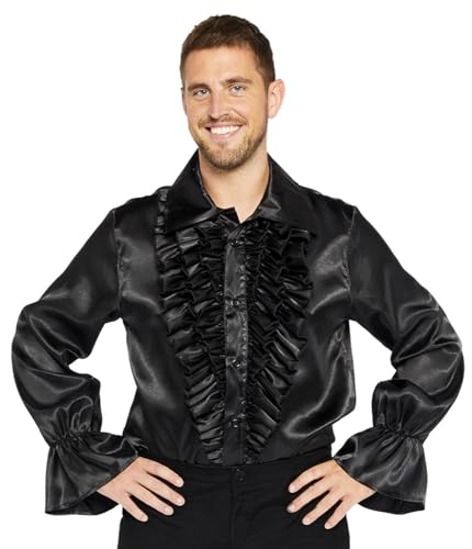 amscan-9907307 Chemise Disco Noire en Satin pour Homme Taille, Uni, 9907307