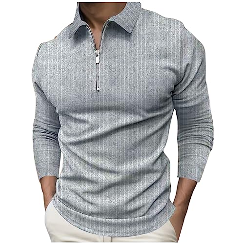 T Shirt Sport Hommes à Demi-Zip, Haut Homme avec Col à Revers Grande Taille Rayée Long Sleeve Tops Confortable Respirant Pullovers Tuniques Couleurs Variées de Basique Chemise Travail Affaires Blouse
