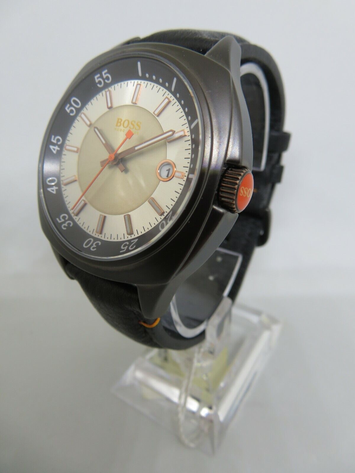MONTRE Homme HUGO BOSS. avec Date. Bracelet en Cuir Souple Noir. 299,00€ NEUVE