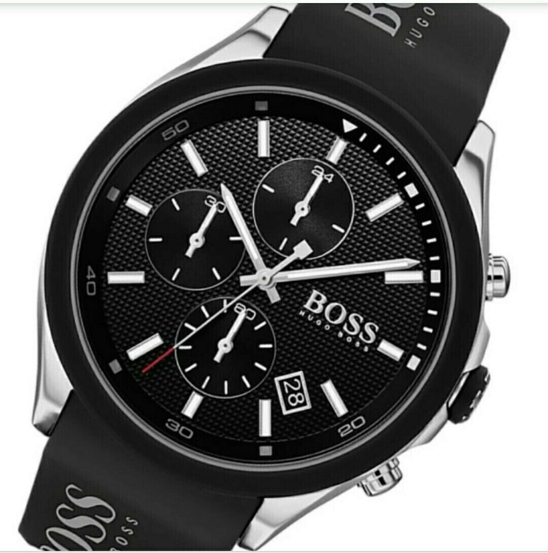 MONTRE Homme HUGO BOSS Chrono avec Date Bracelet en Silicone Noir. 399,00€ NEUVE