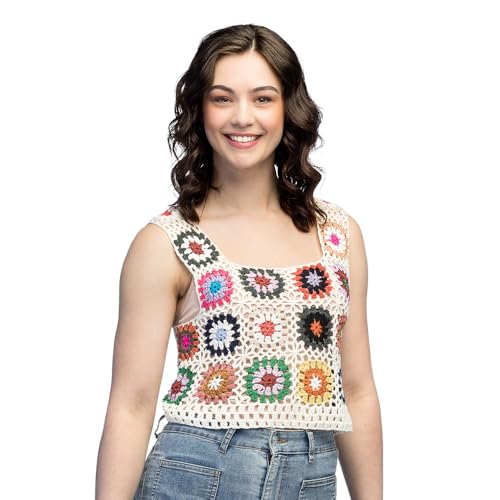 Boland 44594 - Top crocheté avec perles, crop top pour femmes, chemise sexy pour discothèque ou soirée, costume pour carnaval et soirée à thème, haut hippie