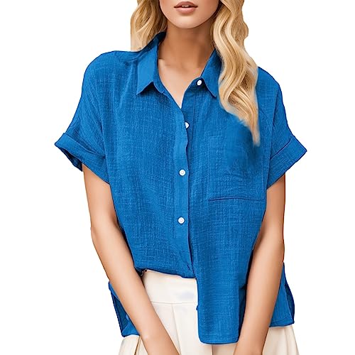 Chemise Tunique Coton Lin Femme - Blouse Ete Femme Dentelle - Chemise Décontractée À Manches Courtes Avec Un Imprimé De La Saint-Valentin Idéale Au Quotidien Chemise Verte Boutonnée À Motif Festif