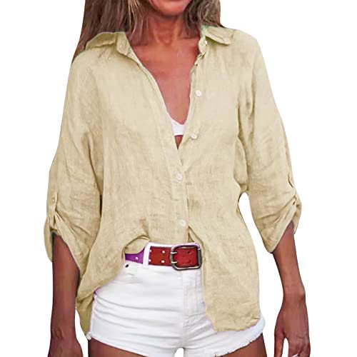 Chemise Femme Coton et Lin Chemisier élégant à col en V pour Femmes Henley Chemisier Couleur Uni Tee Shirt été Haut Top Respirant T-Shirts Grande Taille Chemise Lin Femme Tunique Blouse Pas Cher