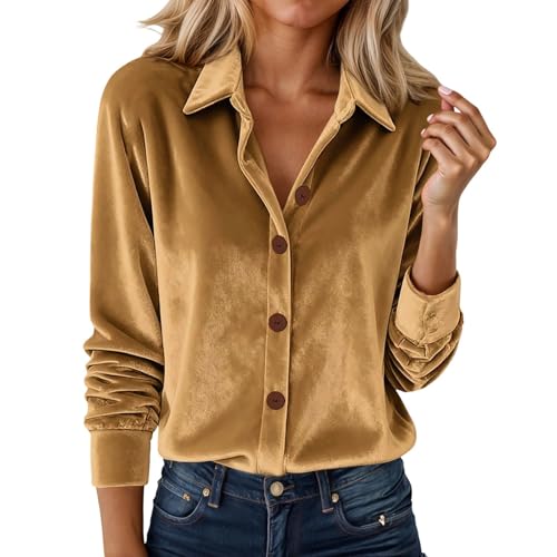 Tunique Femme Chic Et Elegant - Chemise décontractée Femme en Velours côtelé Manches Longues col Ouvert Blouse élégante pour Style Quotidien Confortable et raffiné