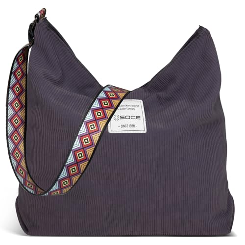 OSOCE Sac Cabas Femme Velours Cotelé Sac Fourre Tout Femme Plage Tote Bag Fermeture Eclair Sac a Main