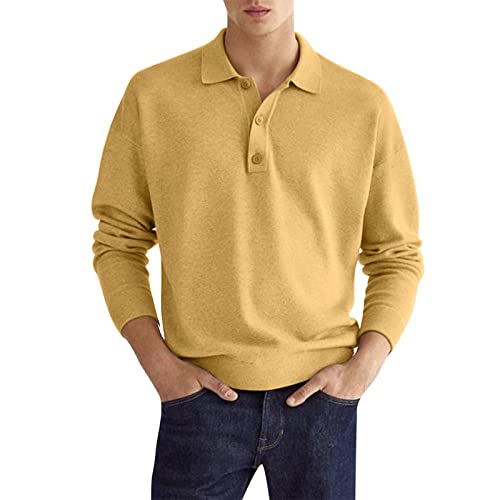 Polo pour Homme Coton,Chemise à Manches Longues BoutonnéE en Velours De Couleur Unie DéContractéE pour Hommes