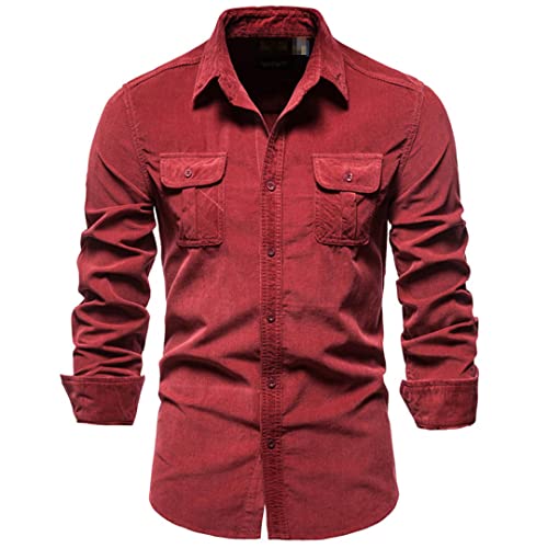 Chemise habillée en velours côtelé pour homme, chemise boutonnée à manches longues pour homme, chemise ajustée, vêtements vintage