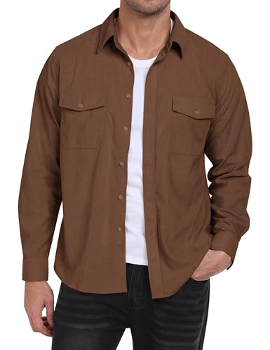 MoFiz Chemise en Velours Côtelé Homme Veste Chemise Boutonnée à Manches Longues Chaude Décontracté Haut Automne Hiver avec Poches Marron EU M
