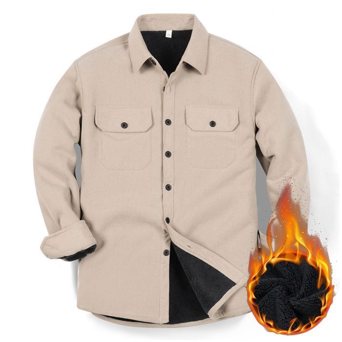 Chemise Homme Velours Côtelé Vintage Chaude Manches longues - Kaki