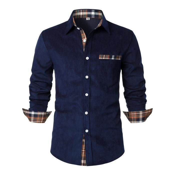 Chemise Homme Velours Côtelé Manches Longues Regular Fit Casual Chemise Contrastée Avec Poche Confortable - Taille EU - Bleu