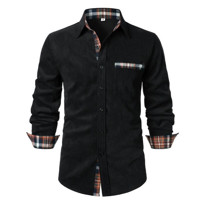 Chemise Homme Velours Côtelé Manches Longues Regular Fit Casual Chemise Contrastée Avec Poche Confortable - Taille EU - Noir