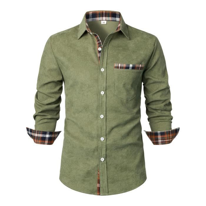 Chemise Homme Velours Côtelé Manches Longues Regular Fit Casual Chemise Contrastée Avec Poche Confortable - Taille EU - Vert