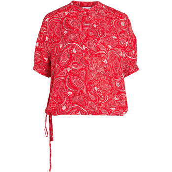 Chemise FEMME avec manches courtes et col tunisien Vila rouge cachemire