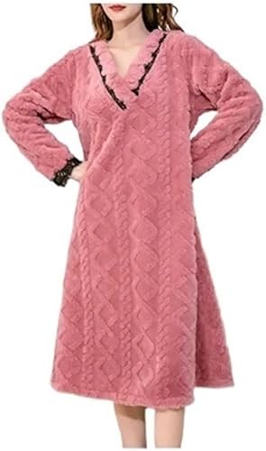 QOKLIYUI Pyjama de Style Salon pour Femmes, Chaud, Adorable et Confortable, vêtements de Nuit Chauds d'hiver, Chemises de Nuit pour Femmes, Robe de Grande Taille, Rose, XXL(140CM)