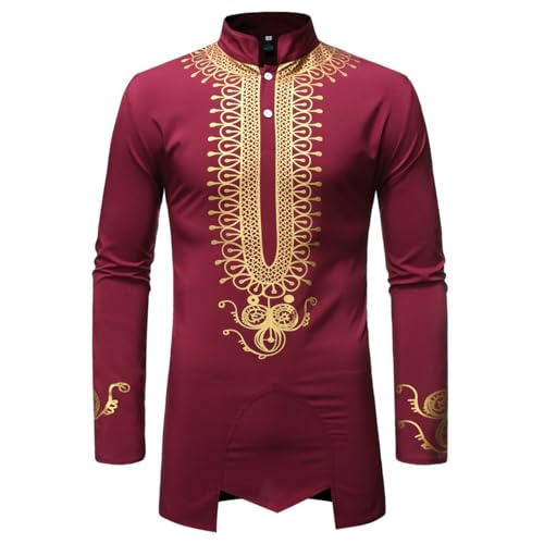 Générique Chemise Homme Coton - Chemise sans Repassage Homme Hommes Abaya Thobe Arabe Palangre t-Shirts col à Bandes Chemises Unies Thobe