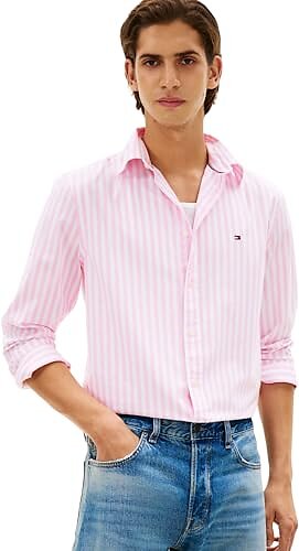 Tommy Hilfiger TH Flex Regular Fit Chemise en Popeline à Rayures (Hommes)