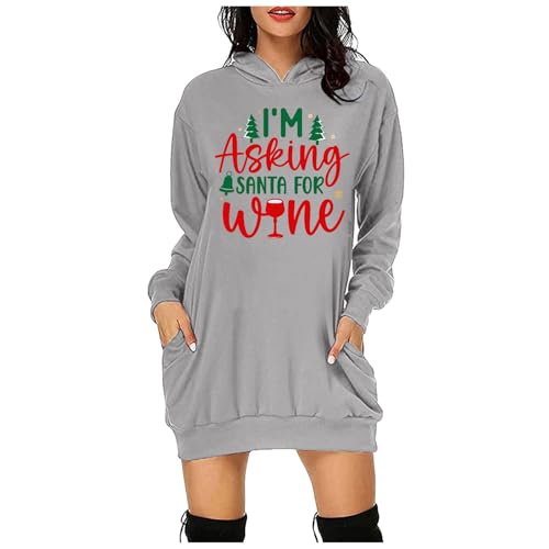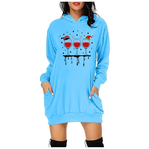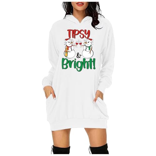 Generisch Pull de Noël pour femme et pull à capuche hauts mini sweat à capuche manches longues pull de Noël robe chemisier d'hiver jupe étroite robe de Noël robe de Noël