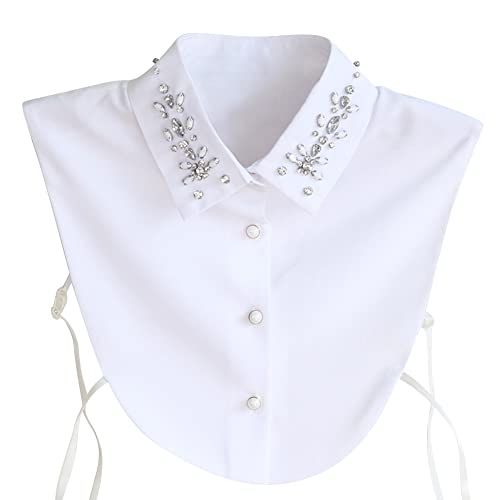 Uposao Femme en Mousseline De Soie Pull Faux Col Revers Amovible Faux Col avec Diamant Décoration Demi-col De Chemise pour Filles, Chemisier, Pull, Robe sans Col