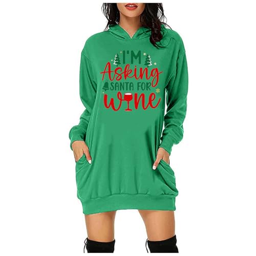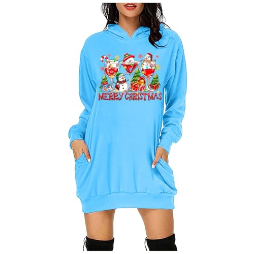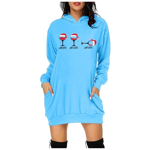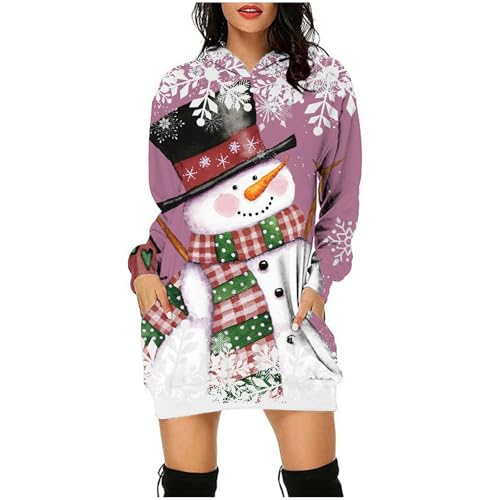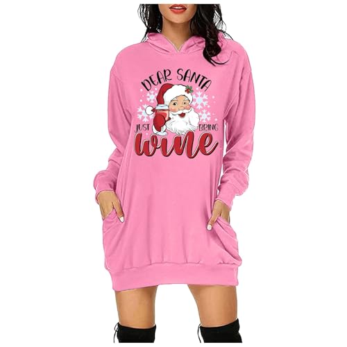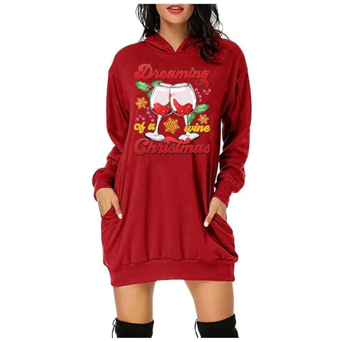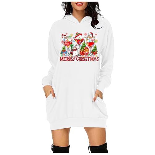 Generisch Pull de Noël pour femme - Sweat à capuche à manches longues - Robe chemisier de Noël - Pull à capuche - Mini pull - Robe de Noël - Robe d'hiver - Jupe étroite