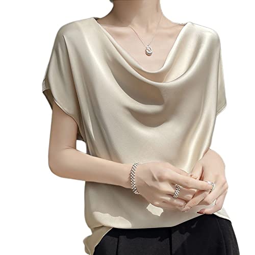 Chemisiers Et Blouses Femme, Chemisier en Satin pour Femme Été Élégant Solide Pull À Col Bénitier Chemises Tops Mode Manches Courtes Tunique Tops Casual Blouses De Travail en Soie T-Shirts Pou