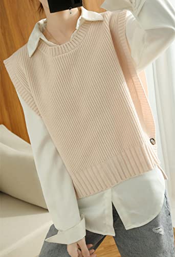 KHJH Gilet Grosse Maille Femme,Pulls sans Manches en Cachemire Beige Gilets Tricotés Fendus sur Le Côté Casual Hiver Femmes Gilets Tricotés Dames Pull sans Manches Gilet Chemisier,S
