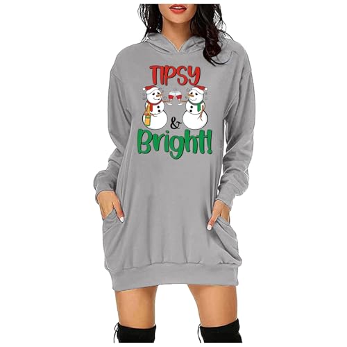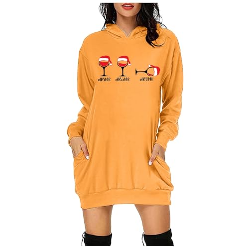 Generisch Robe à capuche pour femme - Pull de Noël - Pull à capuche - Manches longues - Sweatshirts de Noël - Robe chemisier d'hiver - Jupe étroite - Robe de Noël - Pull à capuche - Mini
