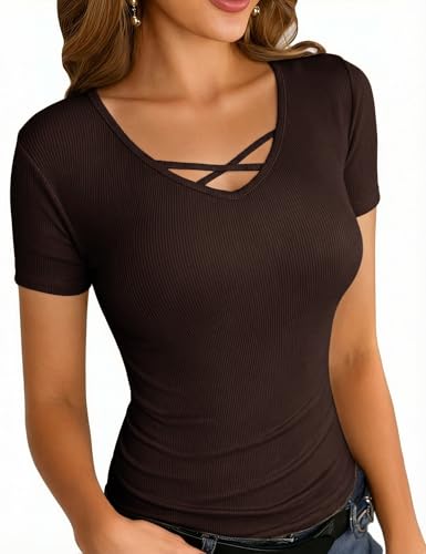 Masrin T-shirt d'été pour femme - Hauts tendance - Imprimé palmier - T-shirt à col en V - Manches courtes - Basique - All-Match - Tunique - Chemisier - T-shirt de sport - Pull pour femme