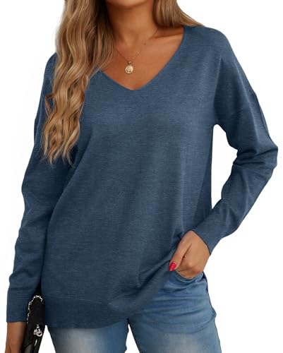 T-Shirt Femme Zippé Col en V Manches Longues Couleur Unie Pas Cher Grande Taille, Haut Basique Décontracté Ample Automne Hiver, 2021 Mode Chic Élégant Chemisier Tunique Pull Tee Shirt Tops, Noir, M