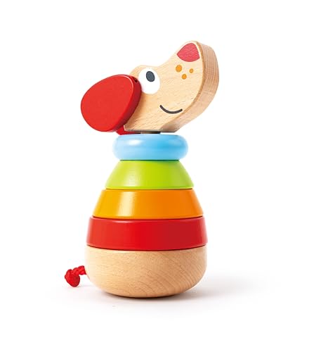 Hape Anneaux Empilables pour Bébé Chien - Jouet en Bois Enfant 12 mois plus - Anneaux Multicolores - Éveil pour Enfant Couleurs, Compter, Motricité, Coordination - Fille & Garçon