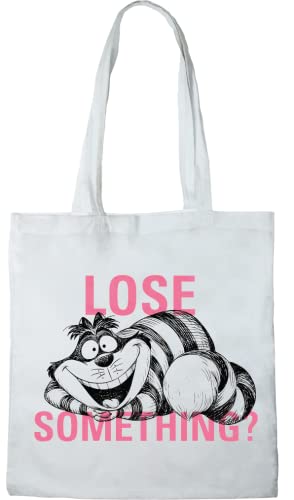 Disney Cotton Division Officiel Cheshire Cat imprimés 100% coton |Réutilisable | Longue poignée | Voyages et achats |Sac fourre-tout 38 * 40 CM, Cheshire Cat_White_4, Taille unique