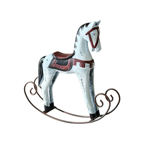 BIUDECO Figurine Décoration de Table Cheval à Bascule Sculpté en Bois Peint, Ornement Vintage Élégant Facile à Entretenir pour Bureau ou Chambre D'garçon et Filles