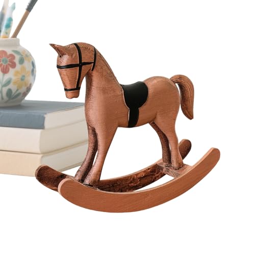 CAKEEYUM Mini Figurine de Cheval à Bascule en Bois Vintage, Couleur Bronze, pour étagère de Bureau et décoration Maison Ferme, Mini Figurines en Bois Cheval à Bascule, décorations Bureau pour la m