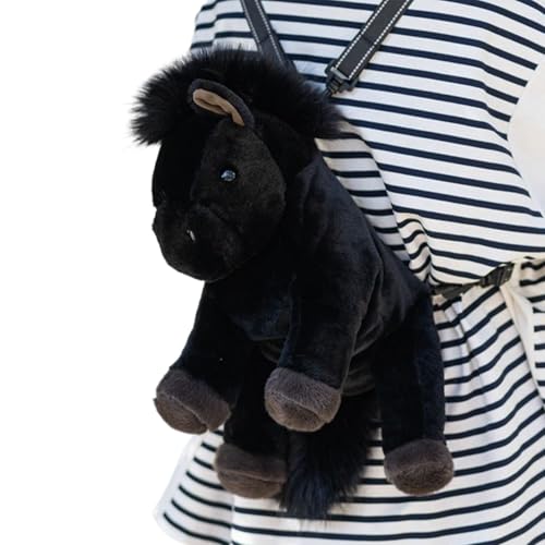 Generico Sac à dos en peluche | Sac à dos en forme de cheval - en peluche pour | Pour garçons, filles, école primaire, école maternelle, voyage maternelle, pique-nique, week-end, Noir