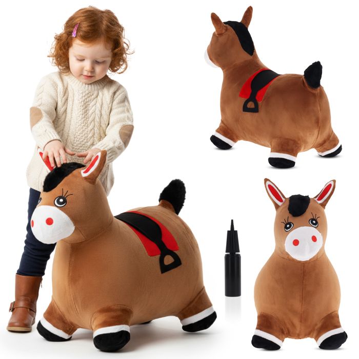 Animal sauteur gonflable - Jouet à sauter - Cheval brun en peluche - de 12 mois - caoutchouc de haute qualité - pompe incluse