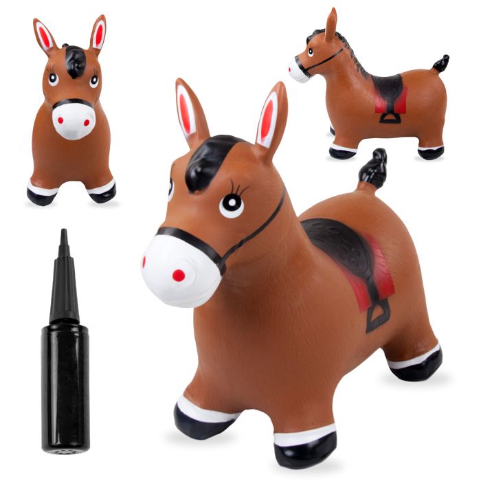 Animal sauteur gonflable - Jouet à sauter - Cheval brun - de 12 mois - caoutchouc de haute qualité - pompe incluse